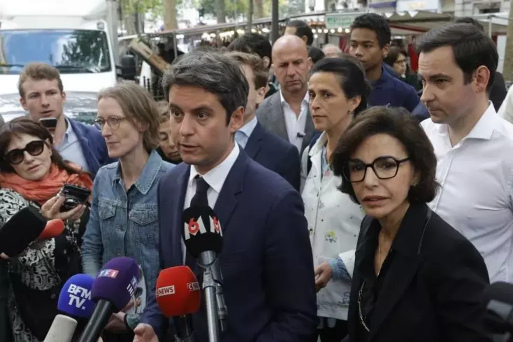 | Le Premier ministre Gabriel Attal en déplacement sur un marché de Paris, le 5 juillet. |
