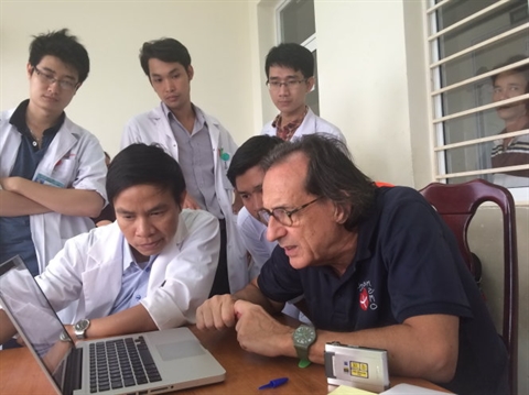 | Le Professeur Roberto De Castro (droite) partage ses connaissances avec des docteurs vietnamiens. |