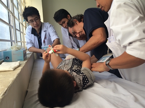 | Le Professeur Roberto De Castro donne des consultations gratuites à un jeune patient vietnamien. |