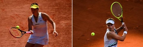 | La Russe Anastasia Pavlyuchenkova (gauche) et la Tchèque Barbora Krejcikova lors de leurs demi-finales de Roland-Garros, le 10 juin. |