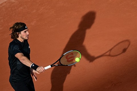 | Le Grec Stefanos Tsitsipas face à l'Uruguayen Pablo Cuevas au 2e tour de Roland-Garros, le 1er octobre. |