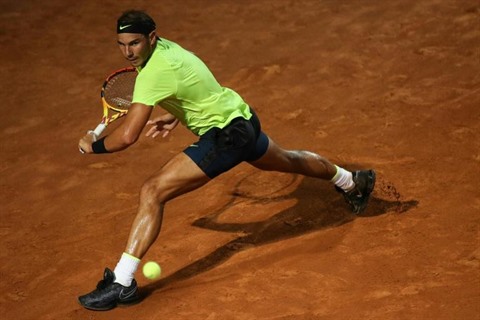 | L'Espagnol Rafael Nadal face à l'Argentin Diego Schwartzman en quart de finale du tournoi de Rome, le 19 septembre. |
