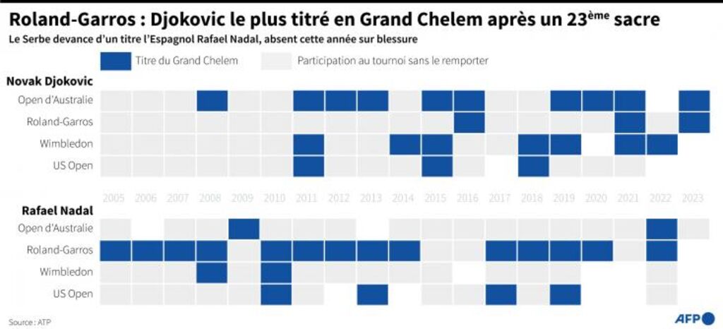 | Roland-Garros : Djokovic devient le plus titré en Grand Chelem avec un 23e sacre. |