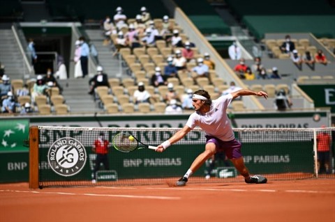 Le Grec Stefanos Tsitsipas face à l'Espagnol Pablo Carreno Busta au 4e tour de Roland-Garros, le 6 juin. Photo : AFP/VNA/CVN |