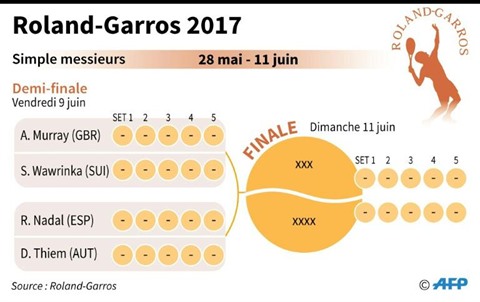 L'Écossais, 30 ans, atteint pour la quatrième fois d'affilée le dernier carré à Paris. Il affrontera le même adversaire qu'en 2016, le Suisse Stan Wawrinka, qu'il avait vaincu en quatre manches (6-4, 6-2, 4-6, 6-2), avant de s'incliner en finale contre Novak Djokovic.