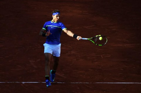 | L'Espagnol Rafael Nadal face à l'Autrichien Dominic Thiem, en demi-finales de Roland-Garros, le 9 juin. |