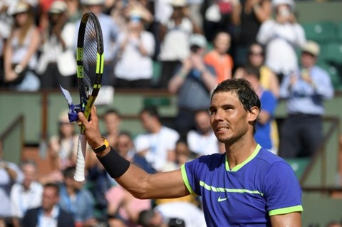 | Rafael Nadal, vainqueur du Néerlandais Robin Haase, le 31 mai à Roland-Garros. |