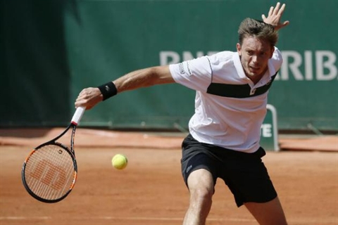 | Le Français Nicolas Mahut face au Letton Ernest Gulbis, le 27 mai à Paris. |
