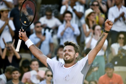 | Le Suisse Stan Wawrinka fête sa qualification pour les quarts de finale de Roland-Garros le 2 juin. |