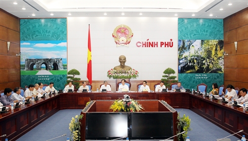 | Le Premier ministre Nguyên Tân Dung (centre) lors d'une une séance de travail avec l’Union des associations des sciences et des technologies du Vietnam, le 29 juillet à Hanoi. |