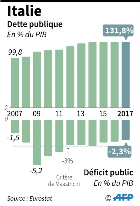 L'Italie ploie déjà sous une dette de 2.300 milliards d'euros et les prévisions de croissance du gouvernement sont jugées beaucoup trop optimistes: 1,5% en 2019 contre 1% prévu par la plupart des observateurs, dont le FMI.