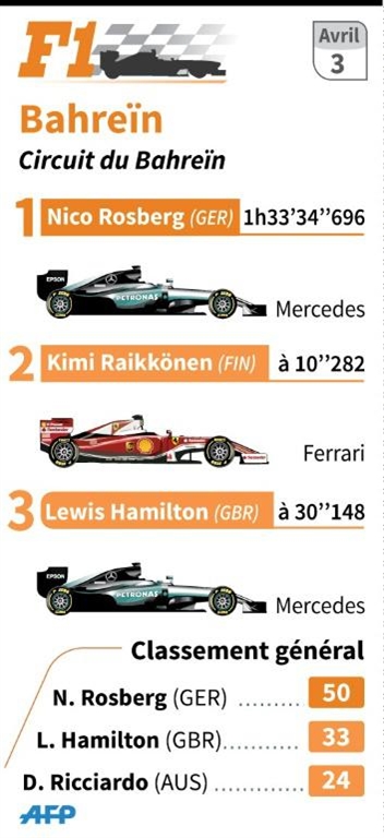 La troisième manche de la saison aura lieu en Chine, le 17 avril, sur le circuit de Shanghai où Rosberg avait remporté son tout premier GP au printemps 2012. Le pilote Mercedes est plus que jamais candidat au titre mondial.