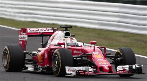 | Le pilote allemand Sebastian Vettel au volant de sa Ferrari lors du GP du Japon de F1 sur le circuit de Suzuka, le 9 octobre. |
