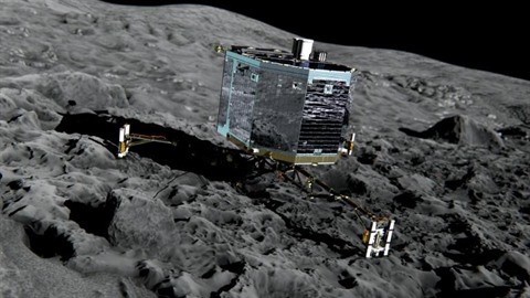 | Vue d'artiste du robot spatial Philae sur la comète Tchouri. |