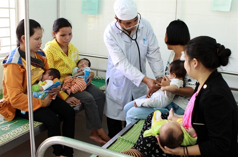 | Soins des enfants dans l'infirmerie de la commune de Thượng Long, district de Nam Dông, province de Thua Thiên-Huê, le 24 avril. |