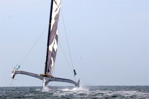 Le Maxi Edmond de Rothschild, mis à l'eau en juillet 2017, est un bateau de la classe très élitiste des Ultim (maxi-trimaran de 32 m de long pour 23 m de large maximum) et est capable de voler.