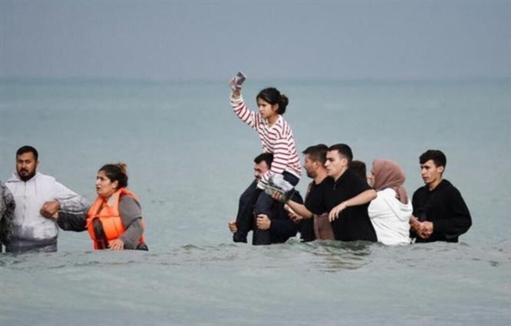 | Des migrants traversent le détroit de la Manche depuis Wimereux, en France, pour entrer en Grande-Bretagne. |