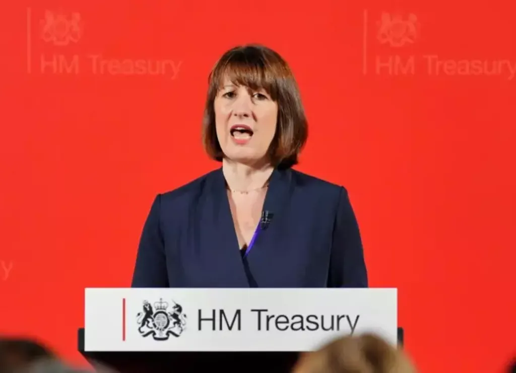 | La ministre britannique de l'Économie, la travailliste Rachel Reeves, prononce un discours le 8 juillet. |