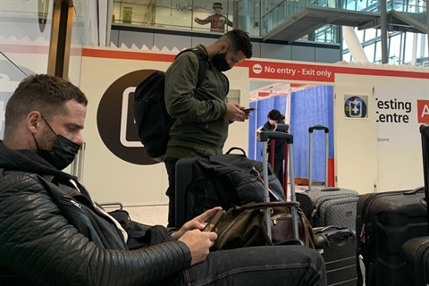 | Des passagers attendent d'être testés pour le COVID-19 à l'aéroport d'Heathrow, à Londres, en Angleterre, le 30 novembre. |
