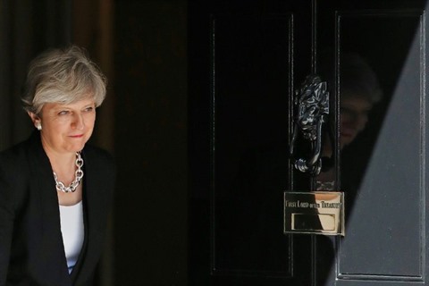 | La Première ministre britannique Theresa May devant le 10 Downing Street, le 19 juin à Londres. |