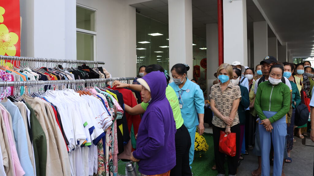Le stand de charité a attiré de nombreux patients et leurs proches. Un espace de libre-service vestimentaire permet aux patients et à leurs familles de choisir de nouveaux vêtements selon leurs goûts.