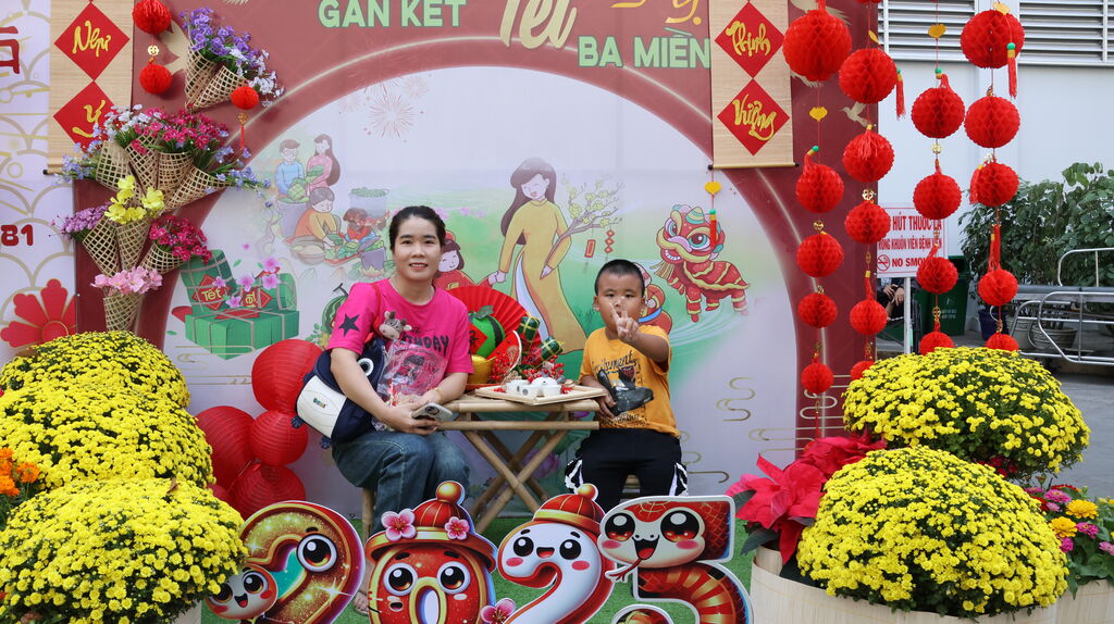 En prenant une photo avec ses parents dans la rue florale, Mme Ngoc Anh (Kiên Giang) a déclaré : "Mon père a été hospitalisé pour une radiothérapie... Aujourd’hui, je l’ai amené ici pour prendre des photos. Toute la famille était très heureuse de voir l’attention que l’hôpital porte à la santé mentale des patients".
