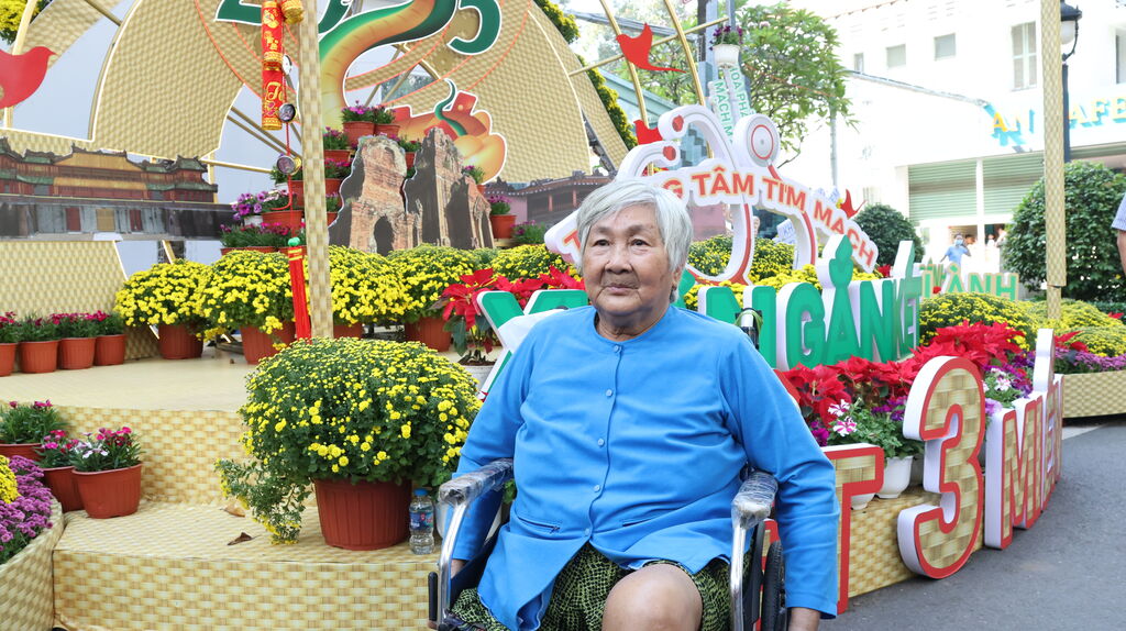 | Un patient venu de la province de Kiên Giang visitant la rue florale de Cho Rây. |