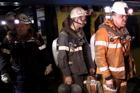 | Des mineurs après un coup de grisou le 13 mai 2010 à Mezhdurechensk en Russie. |