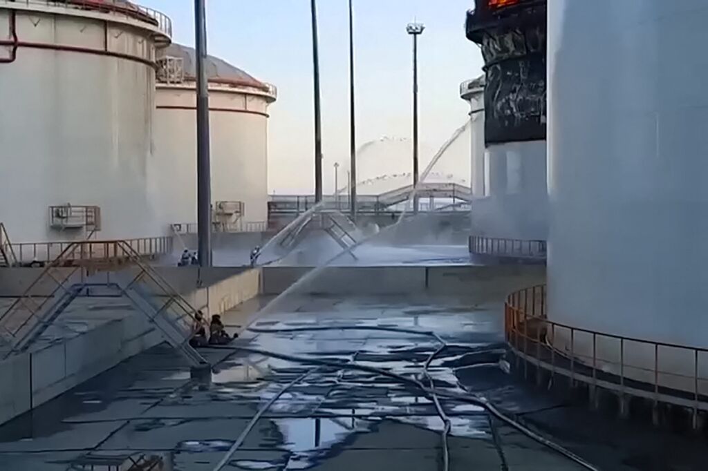 | Le théâtre de l'incendie dans un dépôt de carburant à Krasnodar, en mai 2023. |