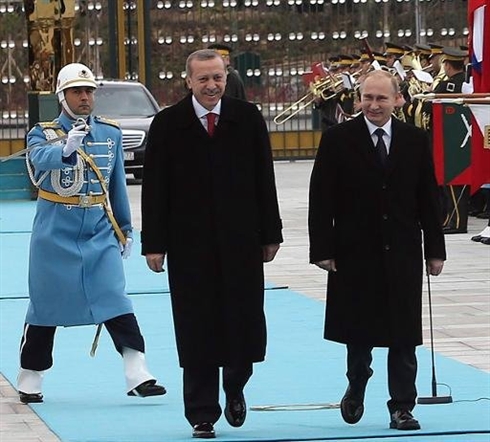 | Les présidents turc et russe Recep Tayyip Erdogan (gauche) et Vladimir Poutine au palais présidentiel d'Ankara le 1er décembre. |