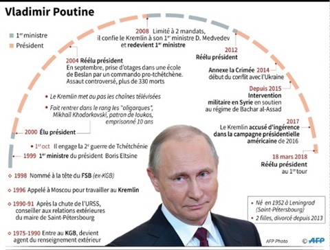 Réélu en mars avec 76,7% des voix, soit le score le plus élevé depuis son arrivée au pouvoir, M. Poutine s'est imposé plus que jamais comme l'homme fort d'une Russie qu'il a replacée au premier rang sur la scène internationale, au prix de tensions croissantes avec les Occidentaux.