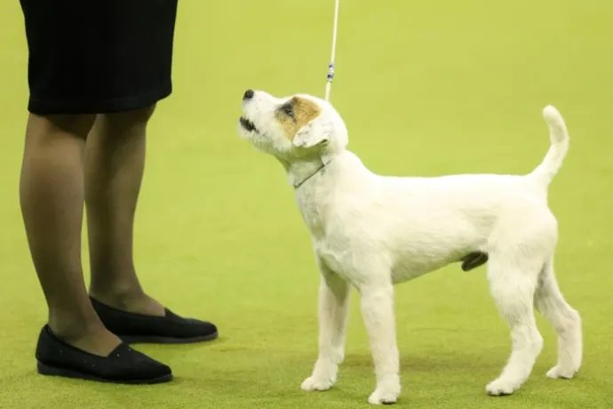 | Deux épagneuls au Salon des animaux de compagnie à Saint-Pétersbourg, en Russie, le 14 décembre 2025. |