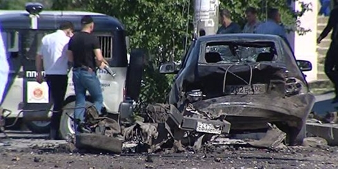 | Deux voitures piégées ont explosé dans le centre de Makhatchkala, la capitale du Daguestan, lundi 20 mai. |