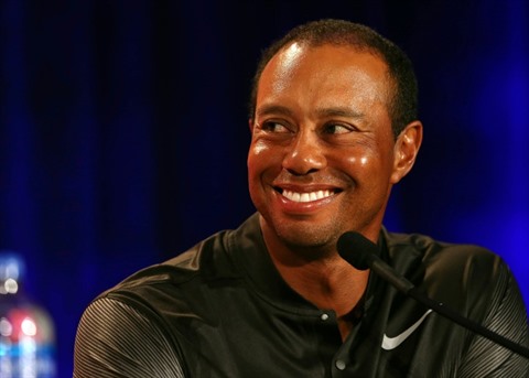 | L'Américain Tiger Woods en conférence de presse, le 4 septembre 2018 à West Conshohocken en Pennsylvanie. |