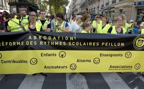 | Manifestation contre la réforme des rythmes scolaires à Paris, le 6 septembre 2014. |