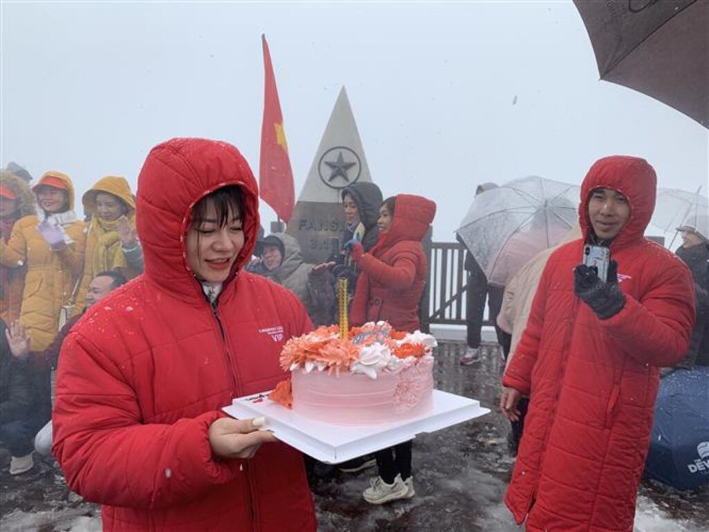 | Des touristes à Fansipan, à Sa Pa (Nord), le 29 décembre. |