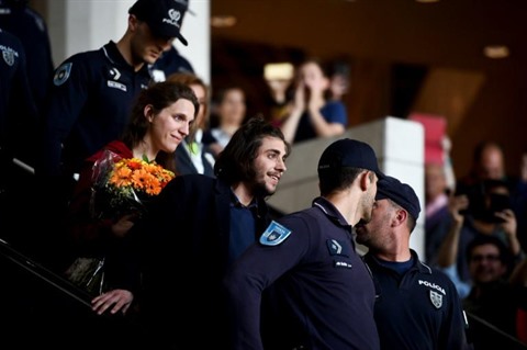 Escorté par des policiers en compagnie de sa sœur aînée Luisa Sobral, auteure de la composition gagnante et elle aussi chanteuse à succès, le jeune homme aux cheveux longs et à la barbe clairsemée a eu du mal à se frayer un chemin à travers la foule compacte qui s'était massée dans le hall de l'aéroport, afin d'atteindre la voiture qui les attendait à l'extérieur.