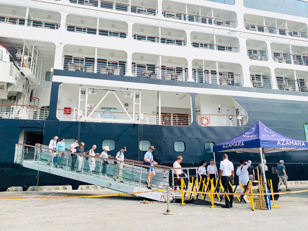 | Passagers de l’Azamara Quest débarquant dans la ville de Dà Nang (Centre). |