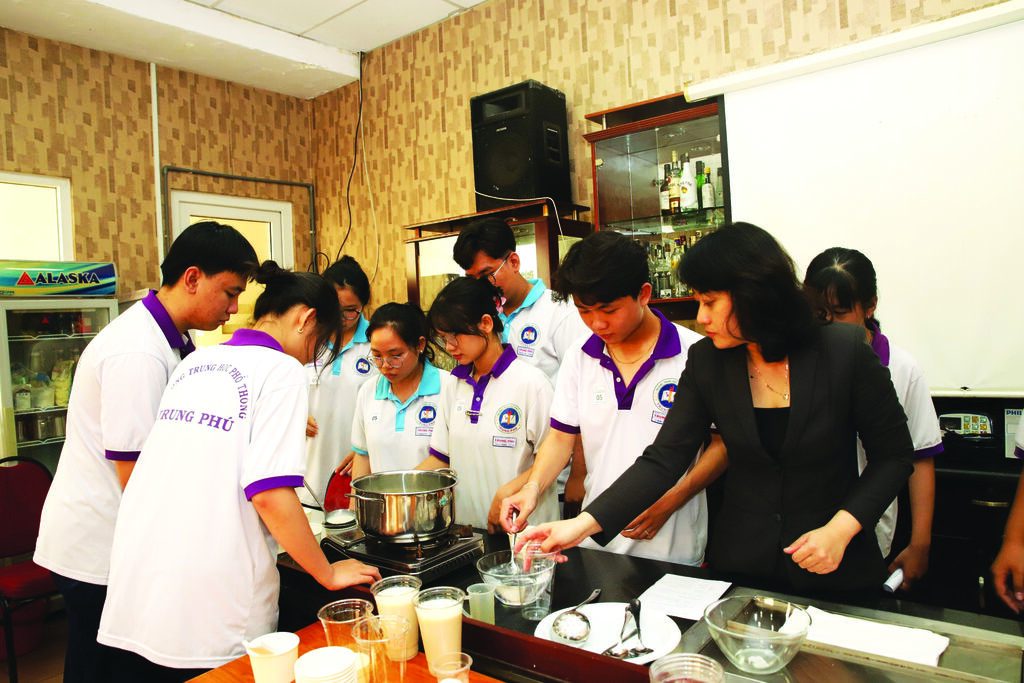 Ces cours visent à améliorer les compétences culinaires, les connaissances nutritionnelles, la garniture et la préparation de plats vietnamiens tels que le “thit heo tâm quê” (porc à la cannelle), le “xôi hat diêu” (riz gluant aux noix de cajou) et des desserts modernes comme le “dâu hu la dua” (tofu aux feuilles de pandan) et le “dâu hu trân châu duong den” (tofu aux perles à la cassonade).