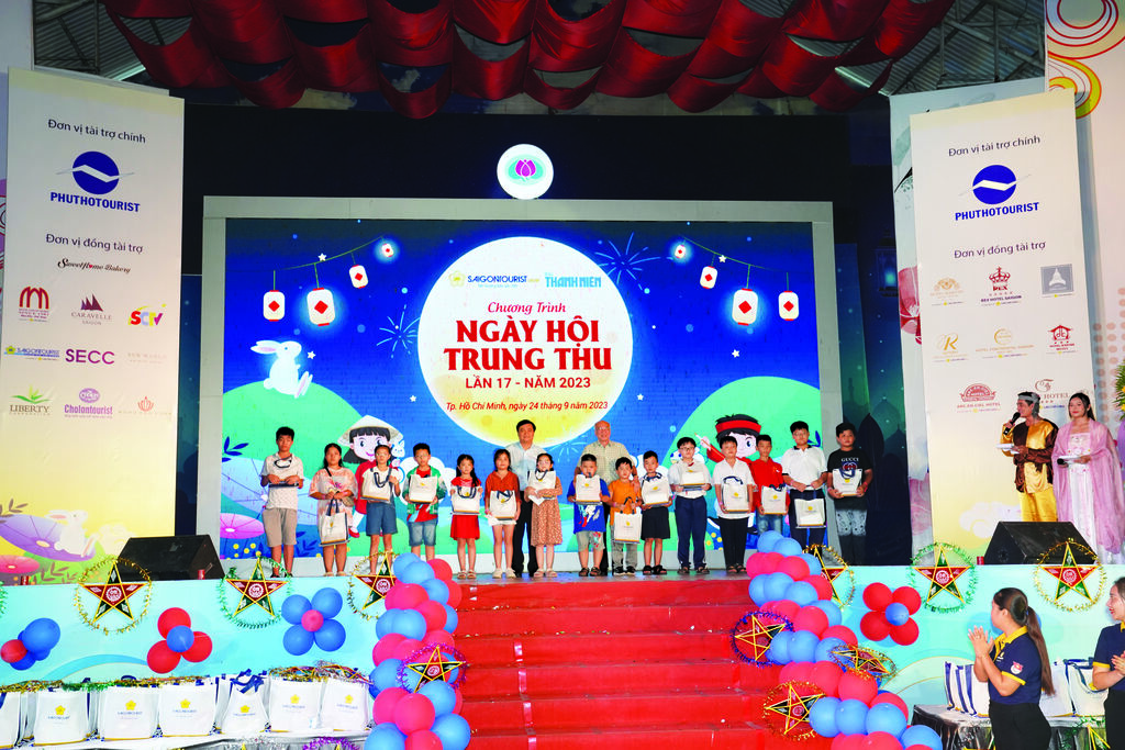 La Fête de la mi-automne 2023 marque la deuxième année de collaboration avec le journal Thanh Niên. Les fonds d’organisation provenaient du programme “Saigontourist pour la communauté”, des unités d’accompagnement et des contributions de ses unités membres.