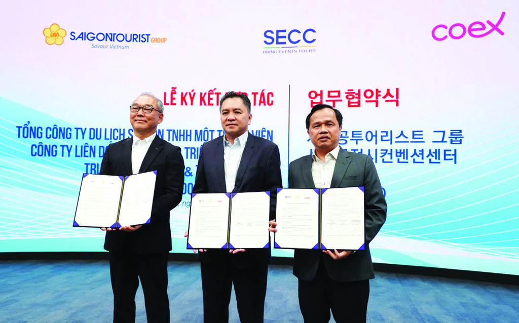 Lors du forum, Saigontourist, le Centre des foires et expositions internationales de Saigon (SECC) et le Centre des foires et expositions Coex (République de Corée) ont signé un accord de coopération. Les parties s’engagent à collaborer étroitement sur divers aspects : études de marché, enquêtes, analyse des tendances, besoins clients, échange d’expériences en gestion et exploitation, formation et amélioration continue de la qualité des produits et services. Elles prévoient également de développer conjointement des projets d’expositions, de s’accompagner mutuellement lors d’événements MICE, de créer des produits touristiques diversifiés, de connecter les informations et destinations vietnamiennes et coréennes, ainsi que de promouvoir mutuellement leurs marques, produits et services.