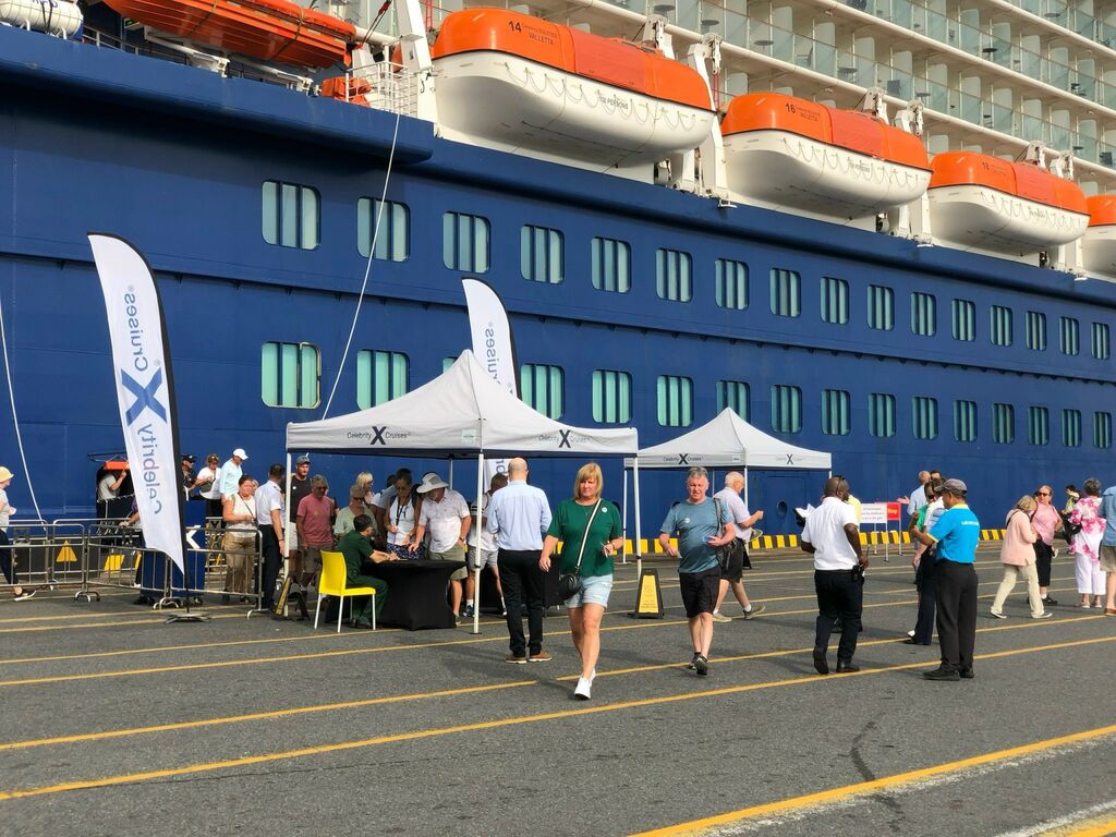 | Les croisiéristes du paquebot international "Celebrity Solstice". |