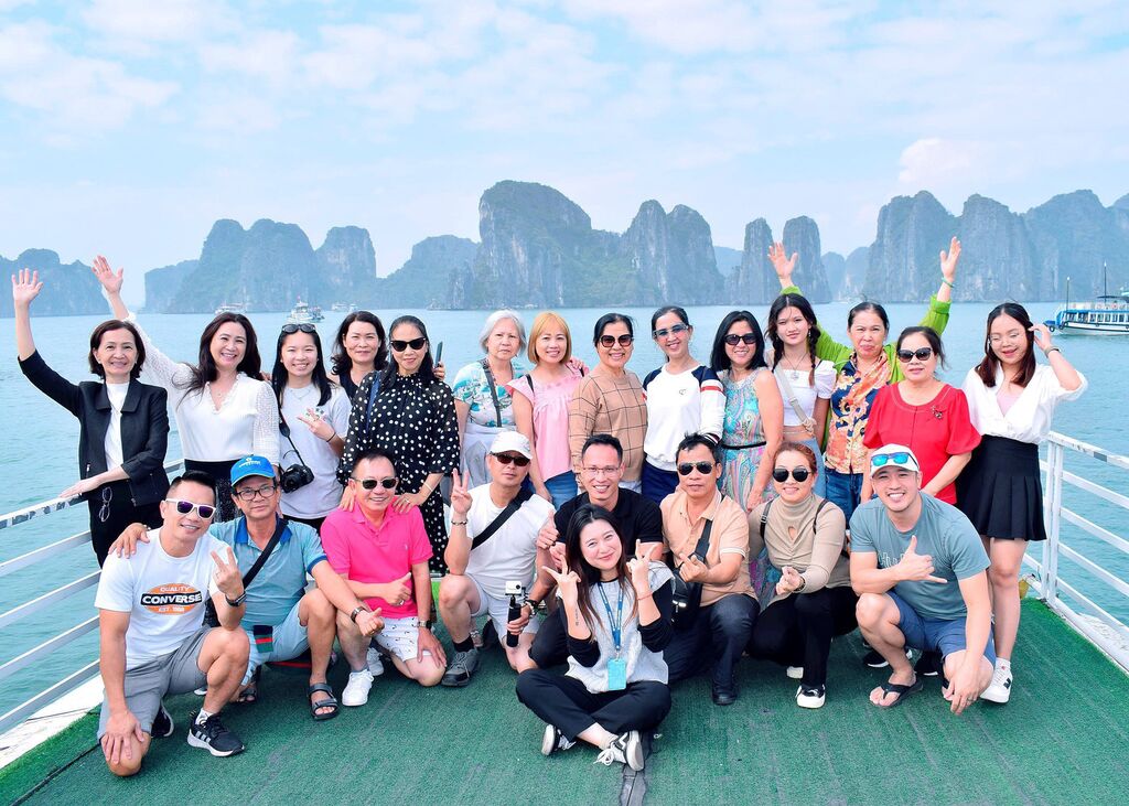| Des touristes MICE de Saigontourist à la baie de Ha Long (province de Quang Ninh, Nord). |