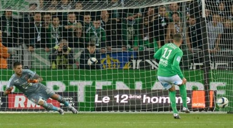 | Le Stéphanois Valentin Eysseric transforme un penalty contre Rennes, le 6 décembre à Geoffroy-Guichard. |