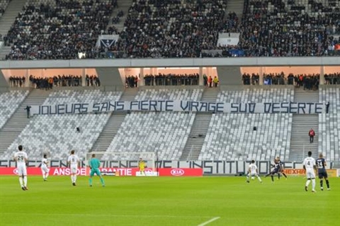 À Bordeaux, où les Girondins se sont rassurés aux dépens de Guingamp (1-0), le Matmut-Atlantique n'était rempli que de moitié (22.000 sur 42.000 places). Une faible affluence qui s'explique aussi par la grève de soutien d'une partie des supporteurs, en réaction à la crise sportive du club. Ainsi, le virage sud était évidé de ses pensionnaires, les Ultramarines, qui ont laissé une banderole parler pour eux : "Joueurs sans fierté, virage Sud déserté".
