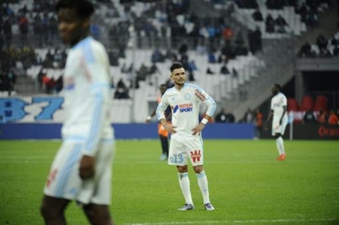 | La déception du milieu de terrain de l'OM, Rémy Cabella, après le match nul concédé face à Montpellier, le 6 décembre au Vélodrome. |