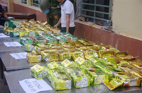 Vers 19h15 le 8 septembre, l’office de douane à la porte frontalière Câu Treo et le poste des garde-frontières Câu Treo a arrêté Nguyên Thi Hông Hà, née en 1976, domiciliée au district de Huong Son, province centrale de Hà Tinh, qui transportait 98 kg de drogues cachés dans des statues en bois.