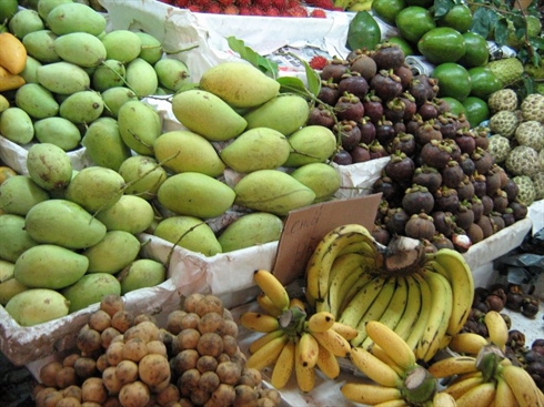 Souvent les touristes s’étonnent de ne pas voir figurer de fruits aux menus des restaurants vietnamiens. Pour un pays qui en regorge, c’est plutôt curieux !? Mais, c’est qu’ici les fruits, on les mange en se promenant, entre amis à la terrasse d’un café en sirotant une «bia hoi» (bière pression) ou un «trà đá» (thé glacé). On les achète au passage à une vendeuse de quatre saisons qui promène sa boutique sur les épaules, ou plus simplement, quand on est à la campagne on les cueille à l’arbre !