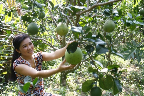 Ah, la pamplemousse d’ici, le «bưởi» comme on dit ! Énorme, à la peau verte épaisse comme celle d’un pachyderme, il trône en bonne place dans les éventaires. À l’époque de sa pleine maturité, il s’entasse en cônes, en pyramides, en tétraèdres, dans les rues, sur les vélos, dans les palanques, au bord des routes… Il faut aller chercher ses quartiers de vésicules sucrées-amères, sous un duvet blanc, astringent comme une toile émeri ! Ma femme s’en sert pour dégraisser les casseroles qui ont attaché, c’est-vous-dire ! Malgré cet inconvénient mineur, c’est le fruit par excellence du voyageur ! On peut le transporter avec soi, sans risque qu’il s’abîme, ni ne s’écrase lamentablement dans le sac à dos, comme la banane.
