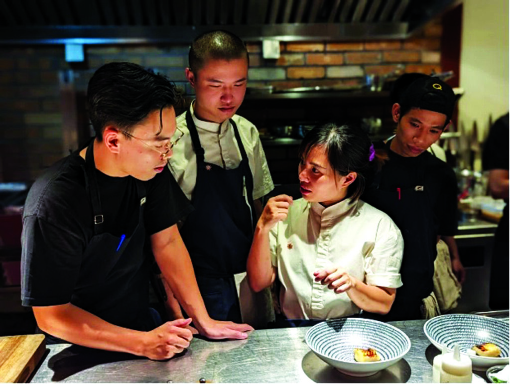 “J’ai de la chance de travailler avec des cuisiniers ayant de riches expériences à l’étranger. Nous partageons une grande passion pour la gastronomie. Chacun a ses idées, son caractère, mais nous collaborons ensemble afin d’expérimenter, de créer de nouvelles saveurs. Long et moi, nous essayons de bâtir une équipe unie, polyvalente où tout le monde se soutient”.